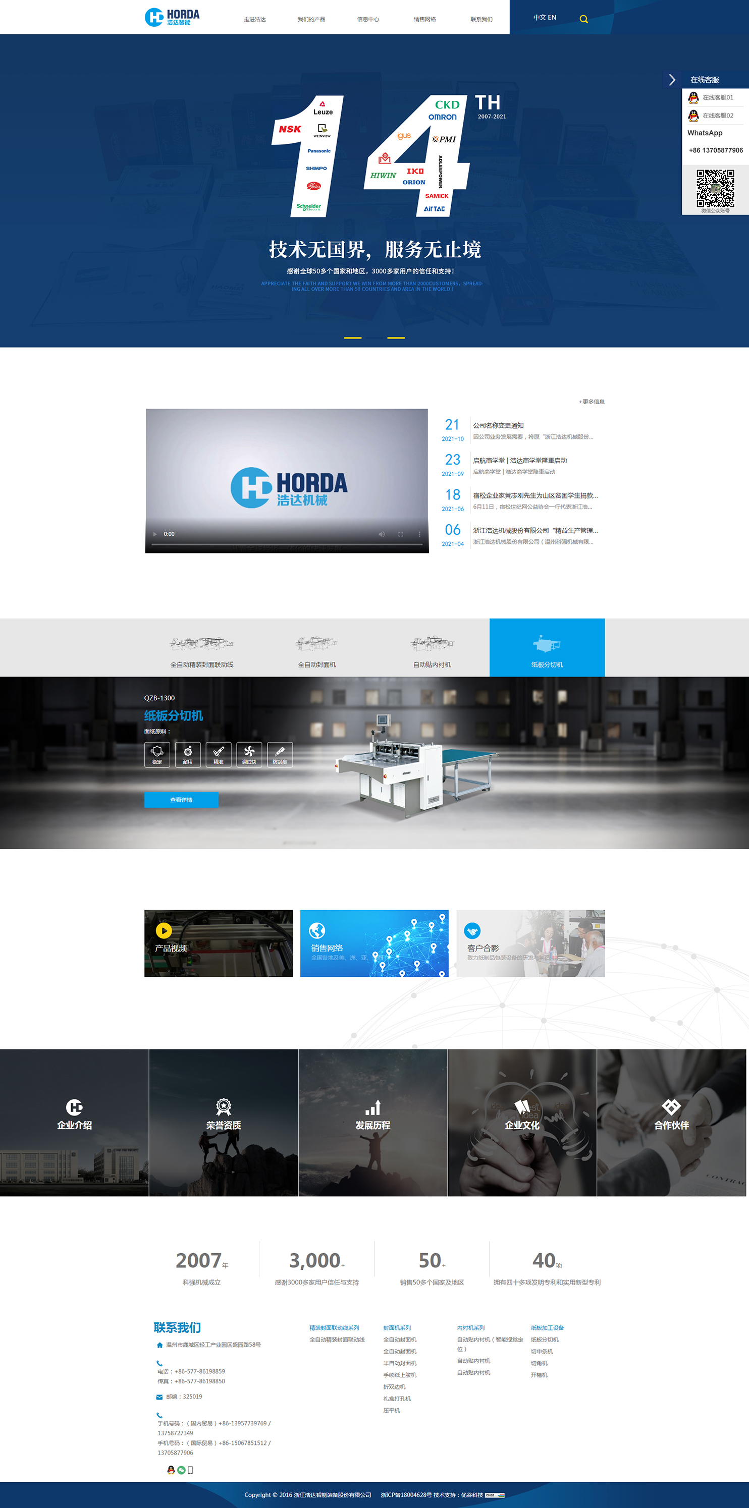 浙江浩達(dá)智能裝備股份有限公司(溫州科強機械有限公司),為中國印刷及設(shè)備器材工業(yè)協(xié)會常務(wù)理事單位,國家高新技術(shù)企業(yè),浙江省科技型企業(yè),《全自動封面機行業(yè)標(biāo)準(zhǔn)》主要制定單位。專業(yè)致力于紙制品包裝設(shè)備的研發(fā)與制造,主要產(chǎn)品有:全自動封面機、酒盒煙盒生產(chǎn)線、手機盒生產(chǎn)線、上膠機、紙板分切機等,產(chǎn)品通過了歐盟CE認(rèn)證,并擁有多項國家專利,適用于印刷包裝企業(yè)大批量生產(chǎn):白酒、香煙、月餅、茶葉、手機、內(nèi)衣、工藝品、化妝品等外包裝盒及文件夾、臺歷、筆記本、精裝書封面等等,不但能全面提升產(chǎn)品質(zhì)量和檔次,而且大大提高了生產(chǎn)效率。